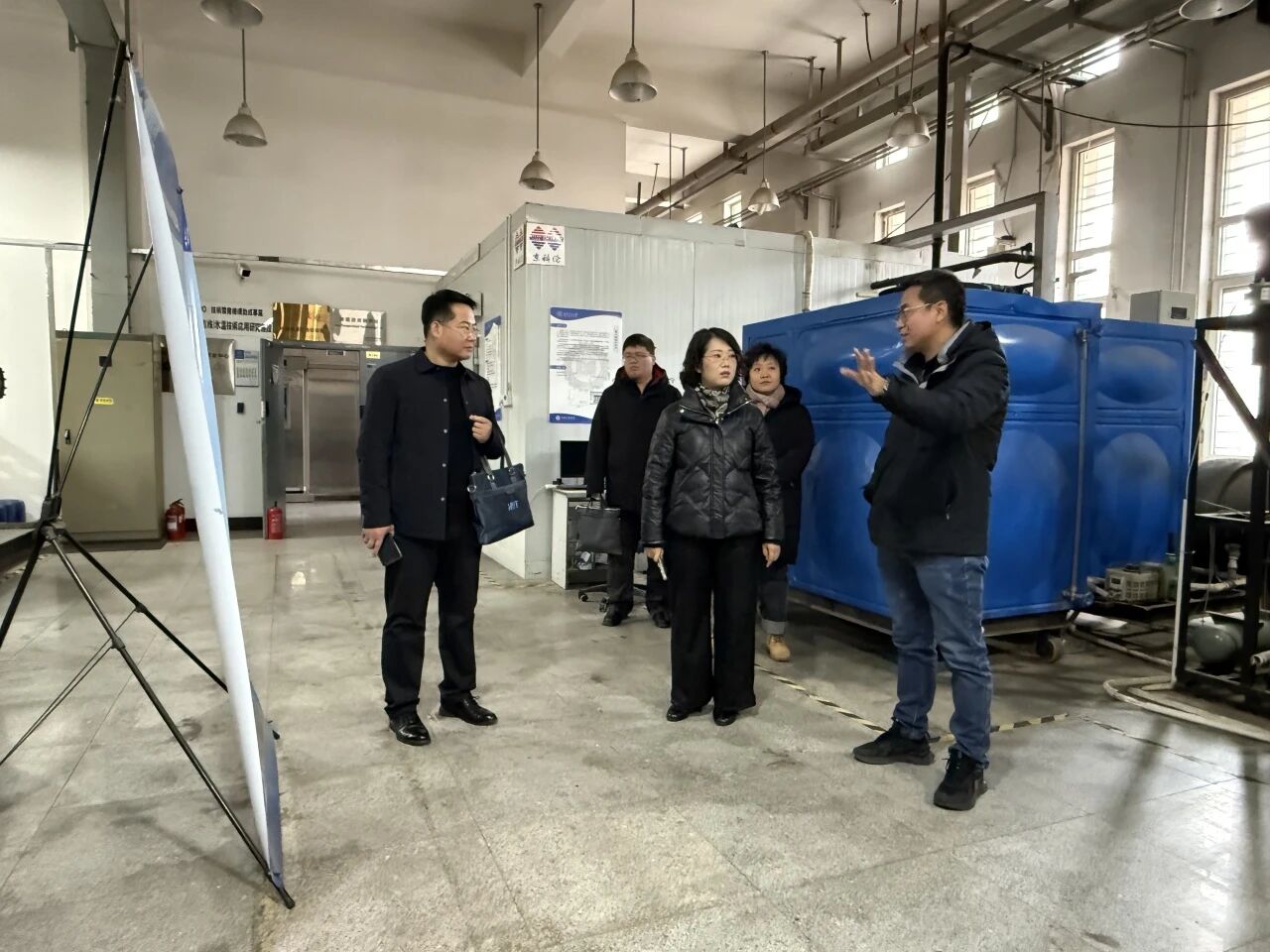 1月29日上午,山东华宇工学院校长助理、能源与建筑工程学院院长魏丰君,院长助理车建成、董敏一行来访机械工程学院。学院党委书记张莹、院长刘圣春、党委副书记王凯、副院长陈爱强热情接待来访嘉宾,并陪同参观“冷暖天商 专业发展历程及办学成果展”和学院重点实验室。